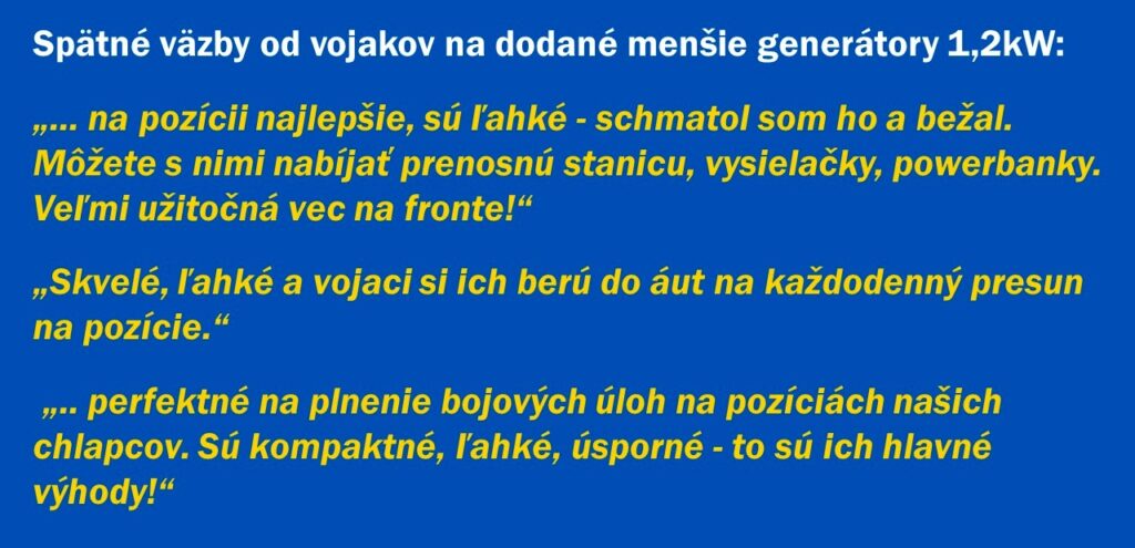 ❗Nových menších generátorov 1,2kW sme od januára dodali už 167 a na fronte sa skutočne stali takpovediac hitom. 👇