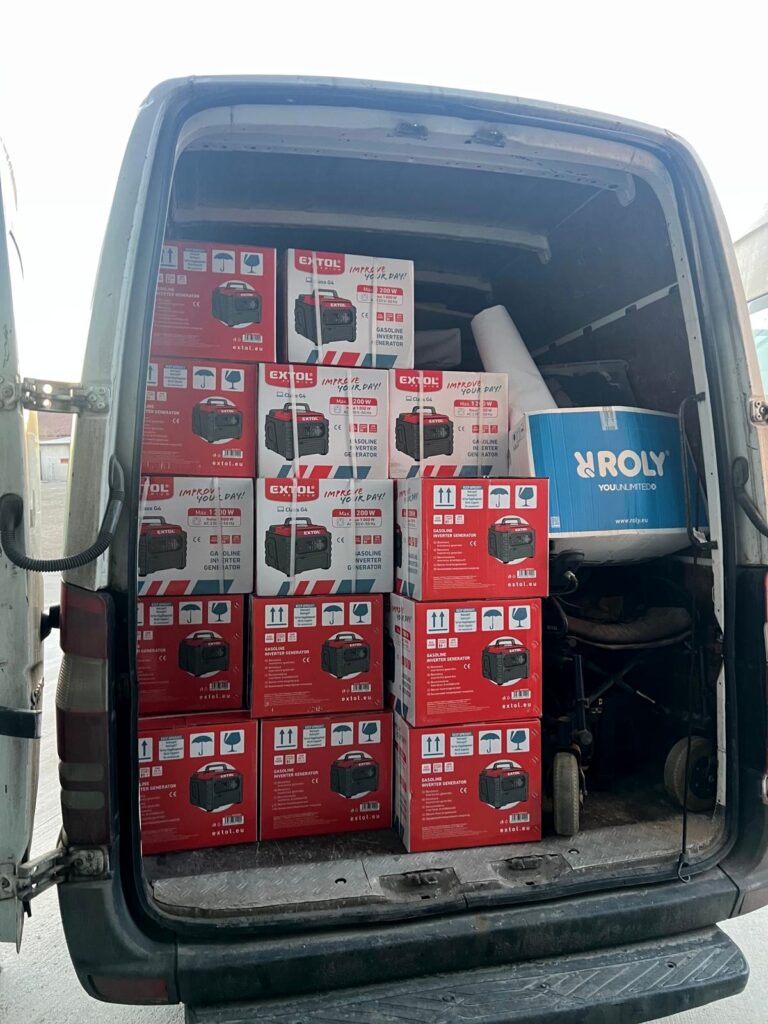 V aute na fotke je 50 generátorov vďaka vašim darom – vo štvrtok v Prievidzi, v piatok už v Ukrajine – ktoré vezie dobrovoľník Franta Glac tým, ktorí ich potrebujú. Tieto menšie prenosné generátory sú overeným riešením a dostanú sa k malým vojenským jednotkám vďaka čomu minimalizujeme presuny za zdrojom energie = znižuje sa riziko zásahu dronom. (Aj citovaná správa vyššie nám prišla od jednej z jednotiek, ktorej sme spoločne pomohli.)