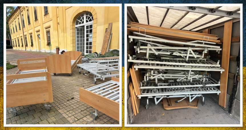 👇 Náklaďák Mitsubishi Fuso, ktorý darovala slovenská firma, má naozaj veľkú ložnú plochu a vďaka tomu sme na Ukrajinu odviezli aj 35 darovaných nemocničných postelí.