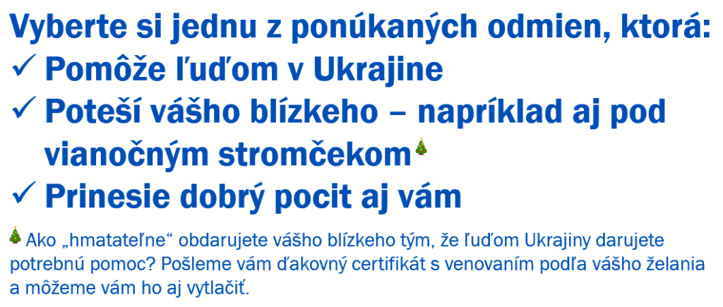 Pokračujme v pomoci ľuďom Ukrajiny + darujme dobrý pocit pod vianočný stromček